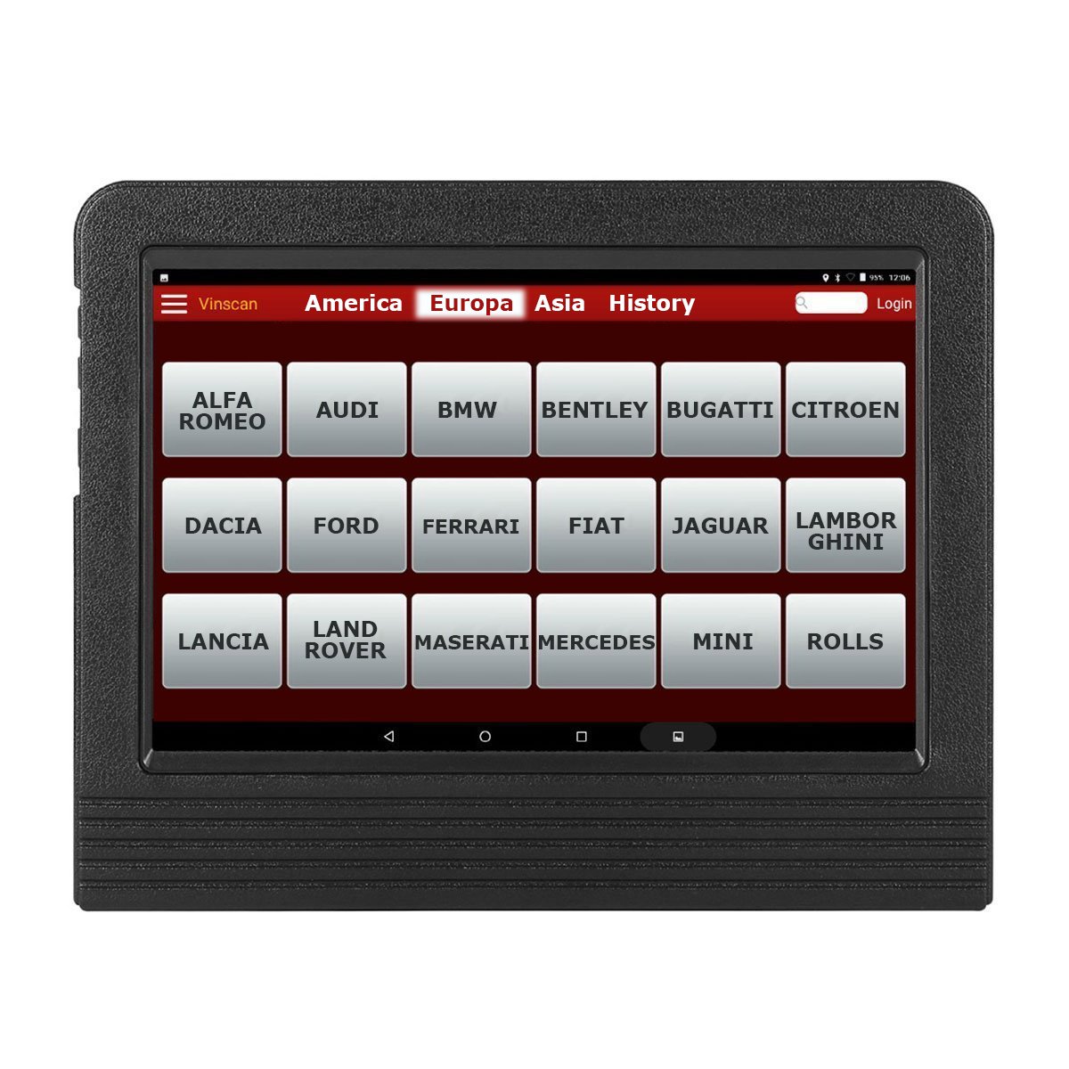 Mit diesem Automobil-Scanner für Android-Systeme können Sie viele Aufgaben erledigen, z. B. Drosselklappenpositionierung, Reifendrucküberwachung, Zurücksetzen der Feststellbremsen, Ölrückstellung, Lenkradkalibrierung, purge control, Einsetzen des Injektors, SRS-Lenkung, Kraftstoffpumpentests und ABS-Entlüftung .