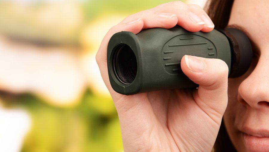 Was ist wie ein Fernglas, hat aber nur eine Linse? Ein Monokular!
