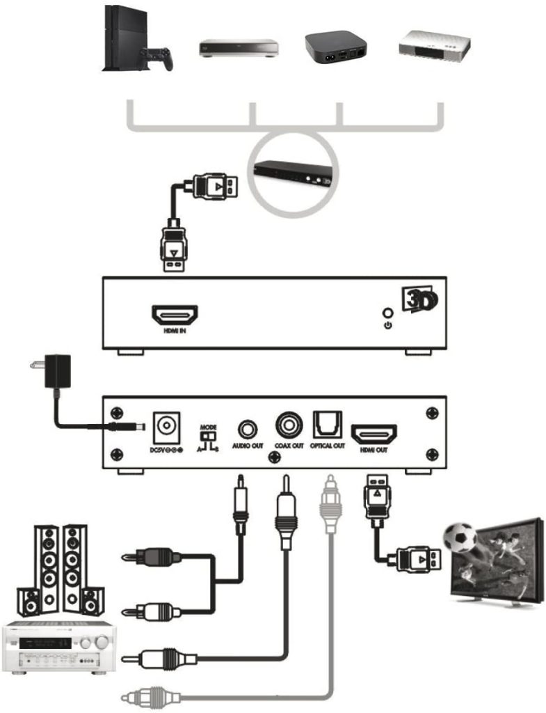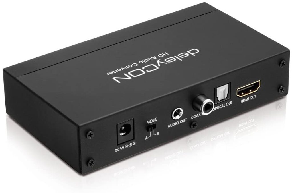 Dieser Adapter hilft Ihnen auch beim Ton. Es gibt auch einen Audioausgang, mit dem Sie das Audiosignal von der HDMI-Verbindung entfernen können. Sie können eine Soundbar direkt an dieses Gerät anschließen.