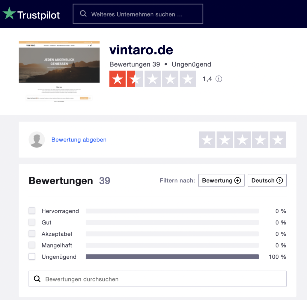 Ich hoffe ich konnte Ihnen mit diesem Beitrag weiterhelfen und Sie vor Vintaro warnen. Somit haben Sie nicht nur Geld gespart, sondern auch die Enttäuschung und Kopfschmerzen bei der Lieferung/Rücksendung bleiben Ihnen erspart.