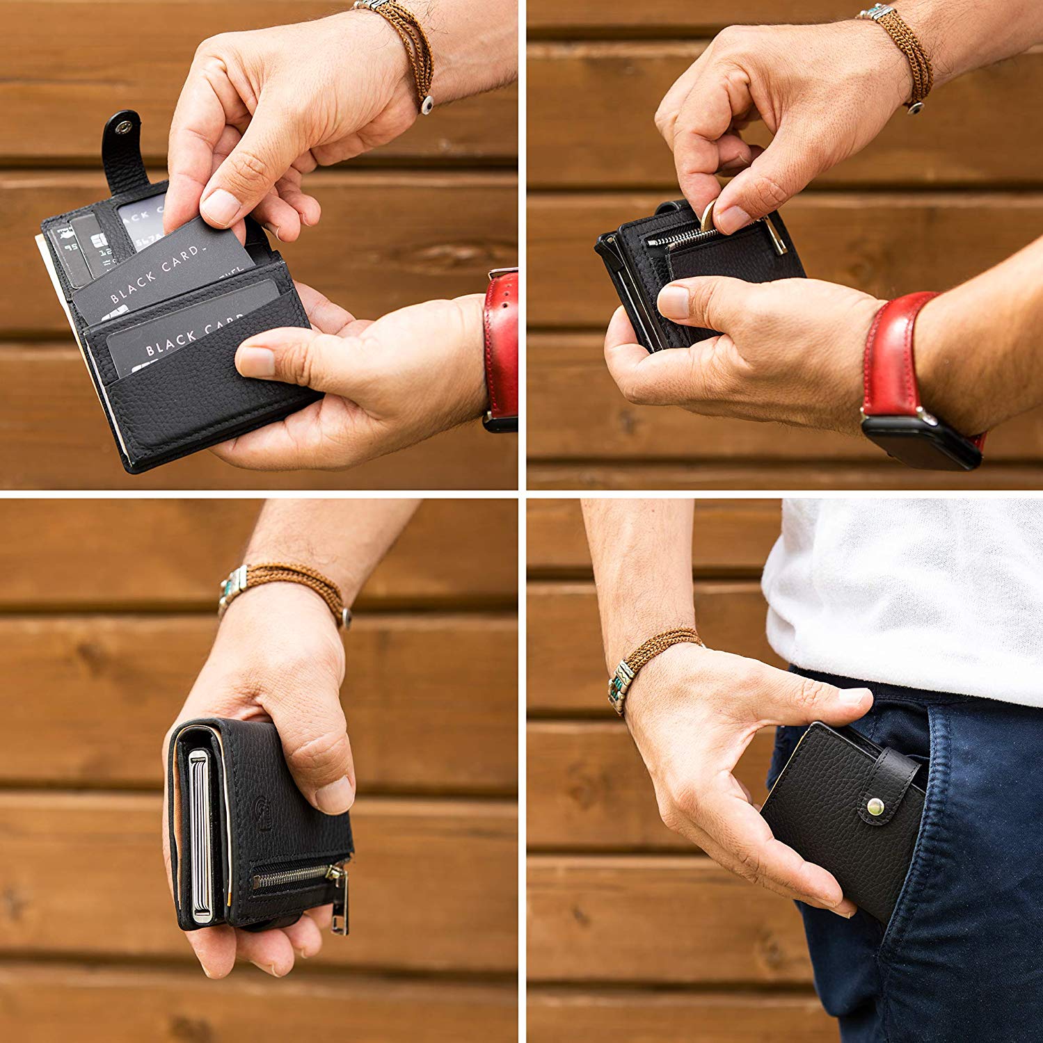 - Das integrierte Münzfach unserer Geldbörse mit dehnbarem Deckel ermöglicht es Ihnen, nicht nur Banknoten und Kreditkarten, sondern auch bis zu 7 Münzen aufzubewahren