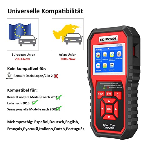 - ✅【Universal einsetzbar für Benzin und Diesel Fahrzeuge】das KW850 universal KFZ-Fehlercode-Lesegerät funktioniert sowohl bei Fahrzeugen, die ab 1996 in den USA,…