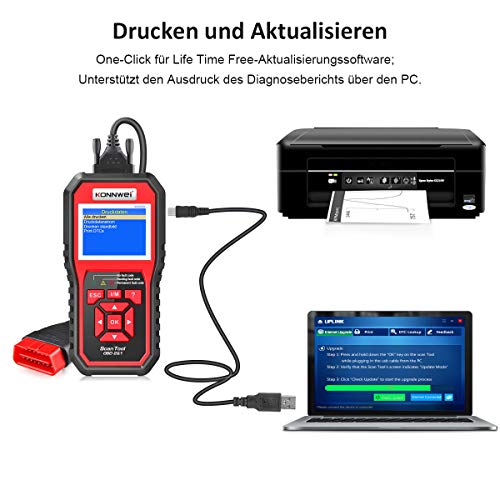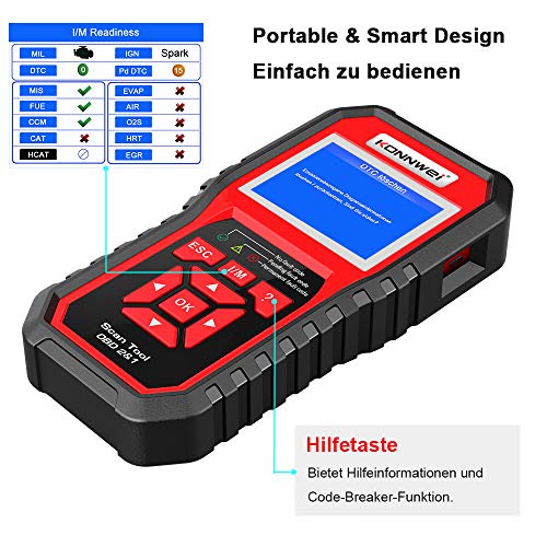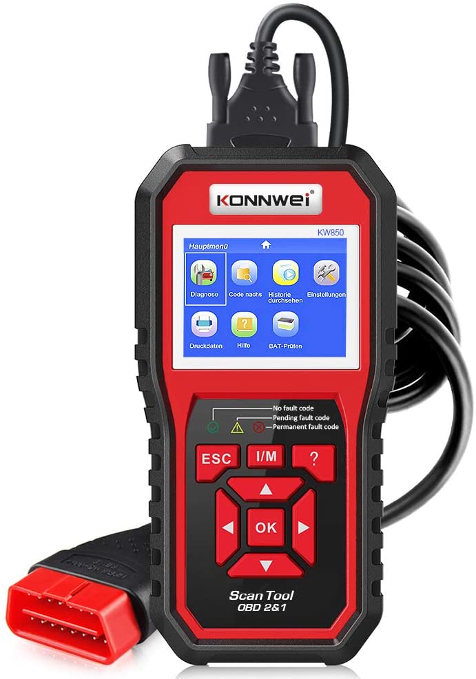 - Das Beste auf dem Markt: Das KONNWEI KW850-Diagnosegerät wird mit einer benutzerfreundlichen Diagnoseschnittstelle und einem optimierten Software-Algorithmus geliefert, der die Diagnose 2-3 Mal schneller macht als andere OBD2-Scanner. Mit einem 2,8-Zoll-LCD-Farbbildschirm und einer grafischen Echtzeit-Sensoranalyse können Sie fehlerhafte Messwerte in Sekundenschnelle identifizieren. Extra langes Diagnosekabel im Lieferumfang enthalten, ermöglicht Ihnen eine freie Diagnose Ihrer Autos auch außerhalb von Fahrzeugen.