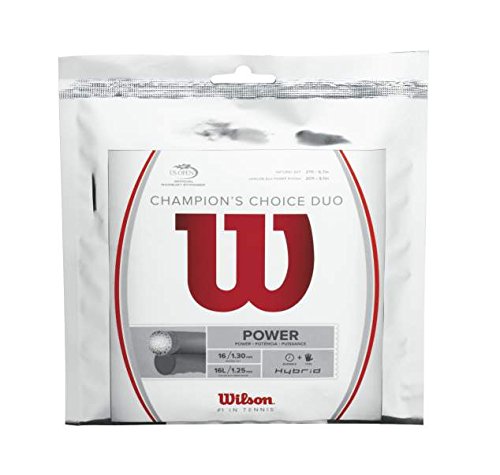 Einige Saitensets wie Wilson’s Champions Choice, unsere Wahl für den besten Hybrid, enthalten zwei verschiedene Saitentypen. In diesem Fall Naturdarm kombiniert mit einer Polyestersaite. Sie können jedoch zwei beliebige Arten von Zeichenfolgen als Hybrid mischen.