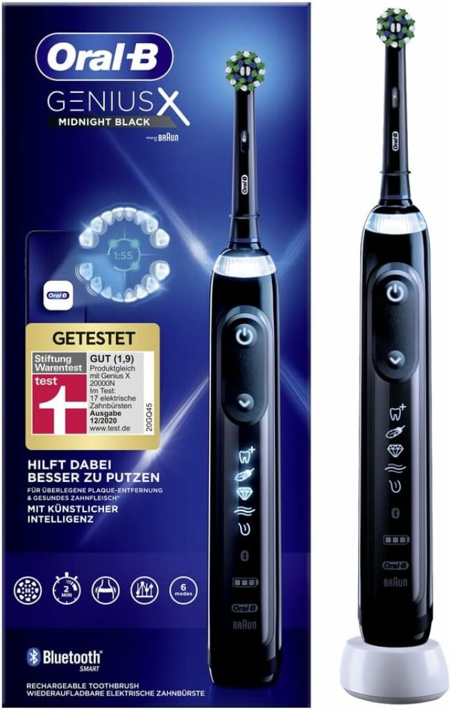 Die Oral-B Genius X Elektrische Zahnbürste ist in verschiedenen Einzelhandelsgeschäften sowie online verfügbar. Im Lieferumfang enthalten sind 1 Handstück mit Ladestation und 1 Aufsteckbürste. Oral-B, die Zahnbürstenmarke Nr.1, wird von Zahnärzten weltweit am häufigsten empfohlen, und es besteht die Möglichkeit, das Produkt risikofrei für 30 Tage zu testen.