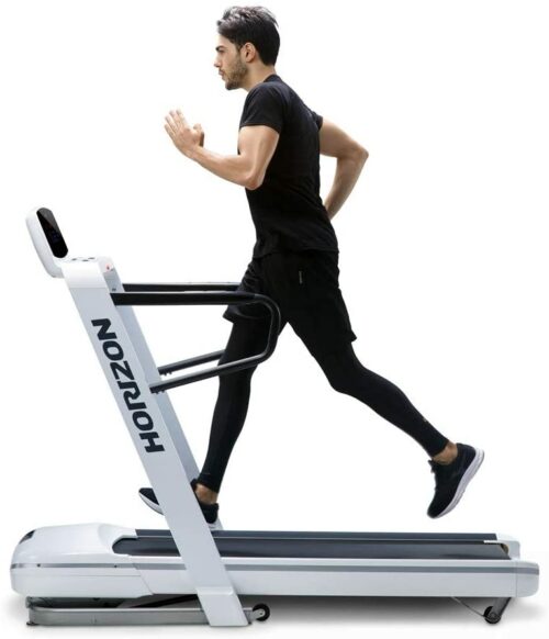 - Faltfunktionen: Auf kleinem Raum trainieren? Horizon hat Sie abgedeckt. Sie können alle ihre Laufbänder mit Hilfe des Hydrauliksystems leicht zusammenklappen, um das Laufband in seine vertikale Position zu bringen.