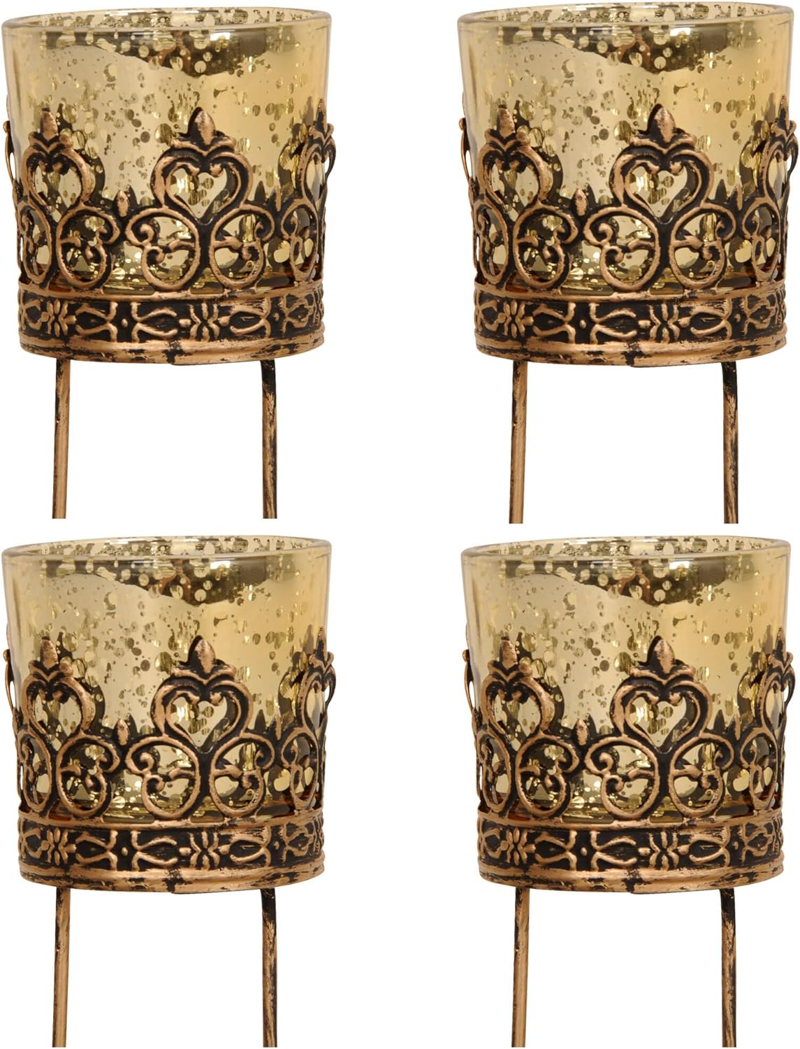 - Vintage Kerzenhalter mit Spieß im 4er Set in reine Handarbeit in Indien hergestellt, Ideal Outdoor als Herbstdeko Gartenteelichthalter zum Stecken im Garten oder Indoor…